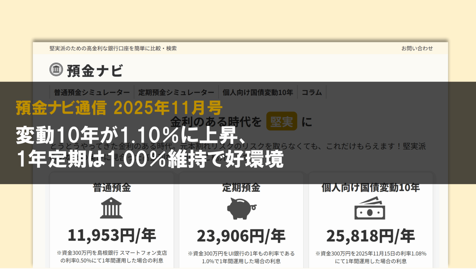 変動10年が1.10%に上昇、1年定期は1.00%維持で好環境【預金ナビ通信 2025年11月号】